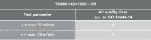 Il nastro trasportatore TB40R-400×1500 – VR è stato testato in conformità alla norma ISO 14644-14 ed è idoneo in base ai parametri di prova specificati